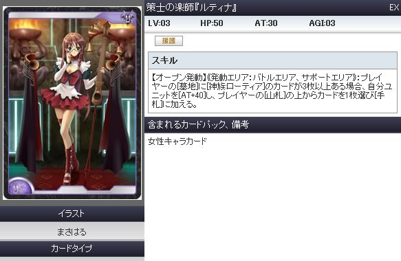 で、宣言どおり「策士の楽師『ルティナ』」のカード考察です。